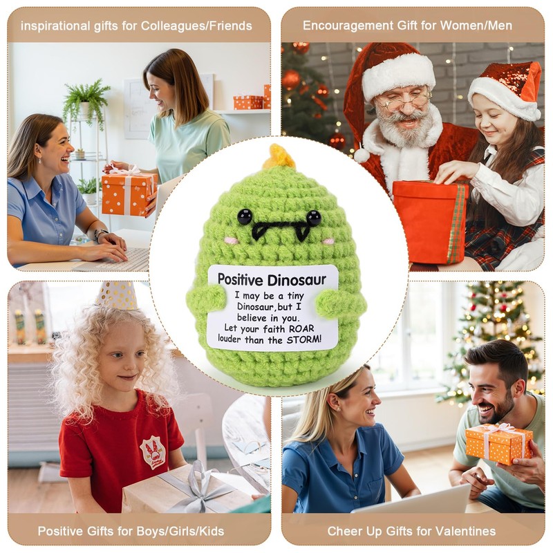 - Positive Vibes Companion: More than a desk decor, this emotional support crochet dinosaur brings warmth and uplifting words to brighten your mood. It shares your joy when you're happy and offers encouragement and comfort when you're feeling down