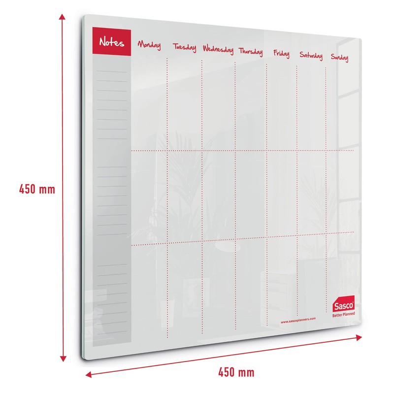 - Contents: 1 x Sasco Semi Transparent Acrylic Mini Whiteboard Weekly Planner, Desktop, dimensions: (W x H) 450 x 450 mm, Supplied with 1 x dry erase marker pen, White, 2410179