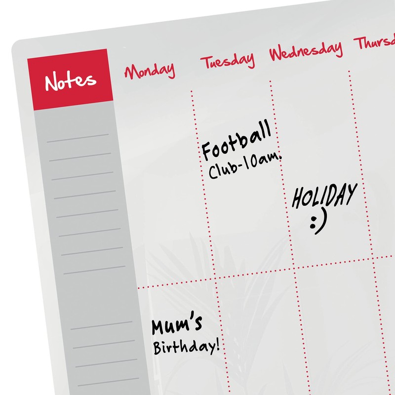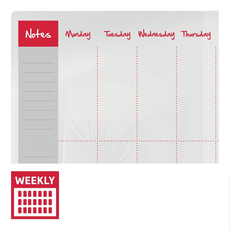 - Semi transparent dry wipe erasable memo board surface that can be used again and again, so simply write, wipe away and start afresh at the start of every week
