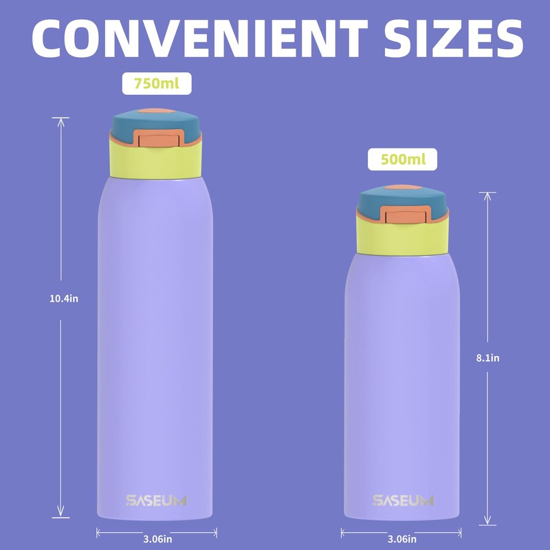 • Leak-Proof & One-Hand Open Design: The push-button lid allows easy one-handed use, while the tight seal ensures zero leaks—toss it in a backpack or place it in a car cup holder with confidence.