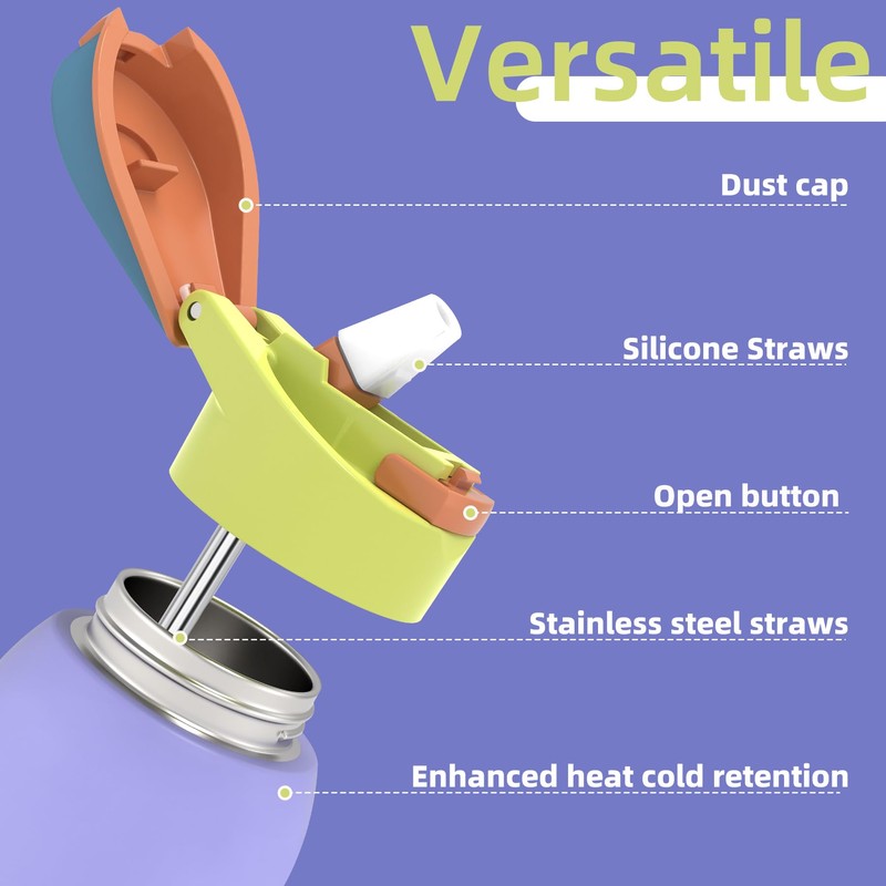 • Child-Safe Materials You Can Trust: Features a soft silicone spout paired with a durable 304 stainless steel straw, which prevents prolonged soaking of silicone in water. All parts are BPA-free and phthalate-free, ensuring safe, hygienic hydration every day.