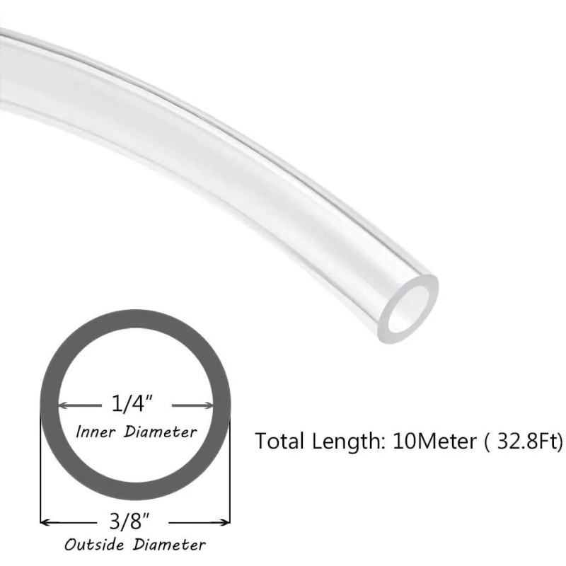 - PU Tubing Pipe Size: 3/8" (Outer diameter) , 1/4" (Inner diameter). Package Total Length:32.8 Feet (10meters)
