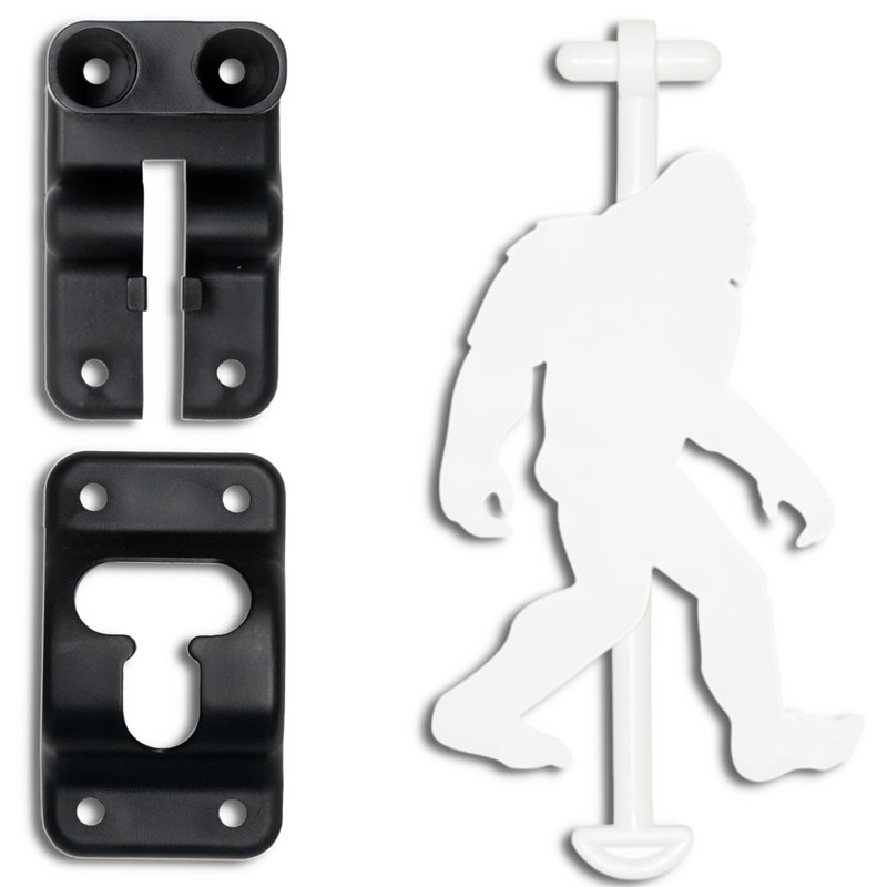 Sasqlatch Original Bigfoot - Made in Oregon, USA. Premium UV Shielded Camper Door Latch. 6" T Style RV Door Holder (Abominable Snowman AKA Yeti, Black Bracket)