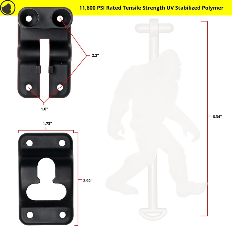 Unleash the spirit of adventure with Sasqlatch's Original Bigfoot door latch, a must-have among camper accessories. This fun design is not only a unique bigfoot gift but also a practical, premium quality tool every RVer, Camper, Trailer Owner, and Motorhomer should own. Crafted in Oregon, USA, the Original Bigfoot latch is designed for all seasons and climates, demonstrating its versatility and resilience. The latch boasts of 11600 psi tensile strength, thanks to its high strength Nylon Polymer material. The sturdy black bracket complements the brown latch, creating an aesthetic appeal that blends perfectly with your RV door, trailer door, or camper door. Not just a decorative piece, this latch is a reliable door holder to keep your door open, even on a breezy day. The Original Bigfoot latch is more than just a door catcher to hold the door open. It safely locks the door in the open position, protecting it from accidental damage. With this latch, you can confidently keep your door open without worrying about unexpected slams. The integrated door bumper further ensures the door remains unharmed. UV shielded for long-lasting use, this 6" latch is more than capable of withstanding harsh sun rays. It is also equipped to securely lock in the stowed position for safe travel at highway speeds. This feature makes it an indispensable part of your rv accessories and trailer accessories. Every detail of this latch, including the rv screen door handle and rv door stopper, is designed with the user's convenience in mind. The Original Bigfoot is not just a latch, it's a testament to the Sasqlatch commitment to quality, functionality, and style. For those looking for a perfect blend of fun and functionality in their travel trailer accessories, the Original Bigfoot is the ultimate bigfoot gift and sasquatch gift. Experience the difference today!