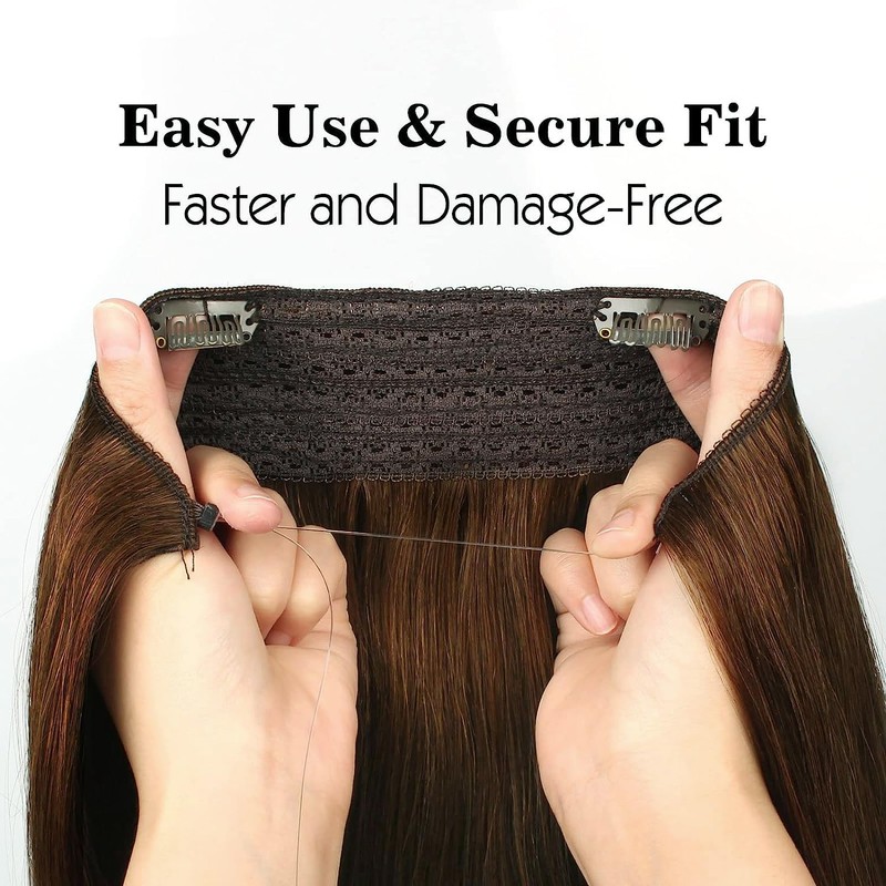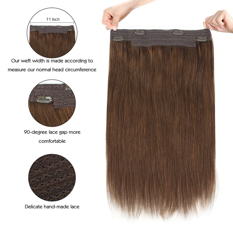 Sassina Invisible Wire Hair Extensions Real Human Hair with Transparent Wire Adjustable Size Secure Clips Natural Straight Secret Miracle Hairpiece, Color#4 18 Inch 110 Gram