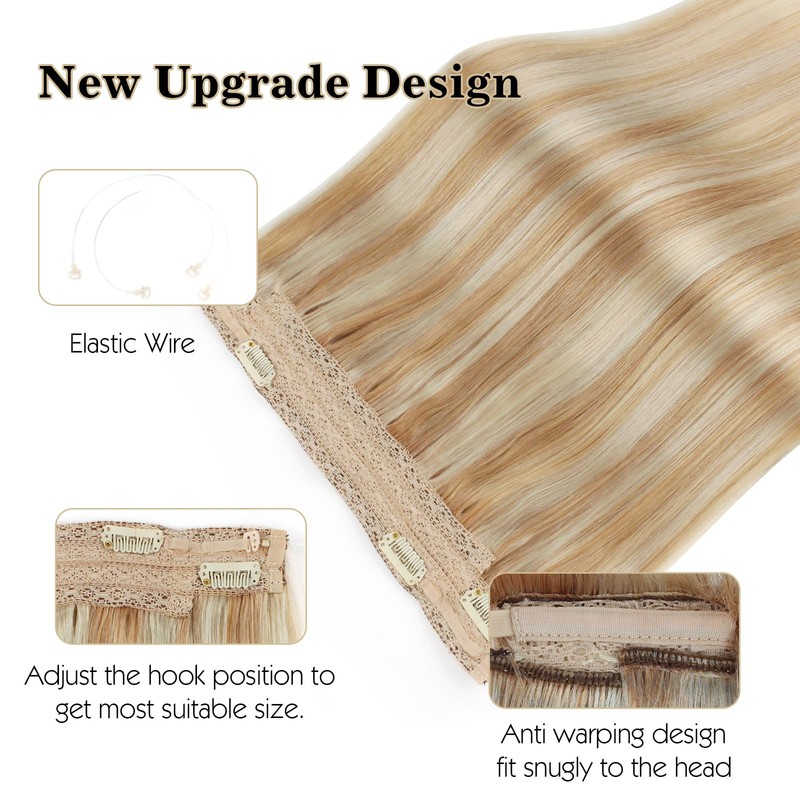 Sassina Invisible Wire Hair Extensions Real Human Hair with Transparent Wire Adjustable Size Secure Clips Natural Straight Secret Miracle Hairpiece, Highlight P12-60 12 Inch 70 Gram