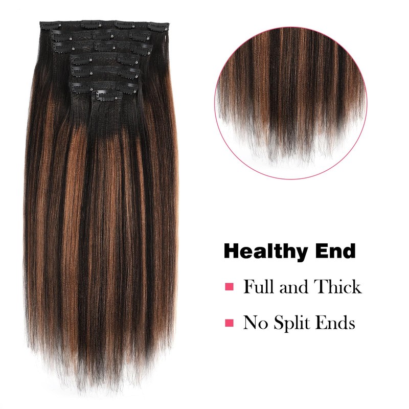 - Advantages: The Yaki Straight Clip-ins Hair is soft, weft and silky, Thick enough to make a full head. No shedding, No tangling, No lices, Can be straightened, curled, dyed, bleached and styled as your demand.