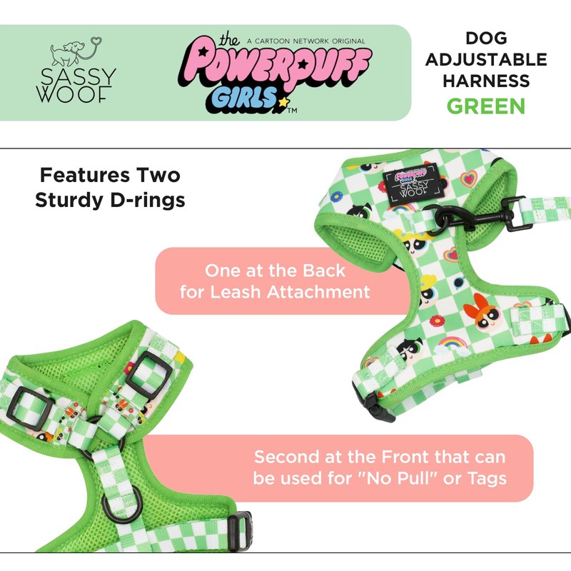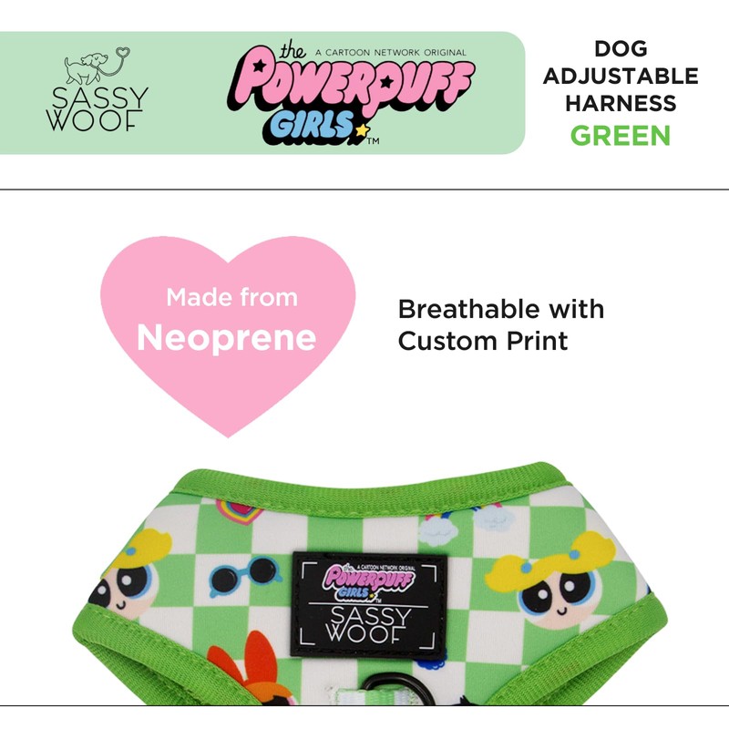 Sassy Woof Dog Adjustable Harness - The Powerpuff Girls™ (Green) - L, Breathable Mesh, No Pull Design with Two D-Rings, Ideal for Large Dogs