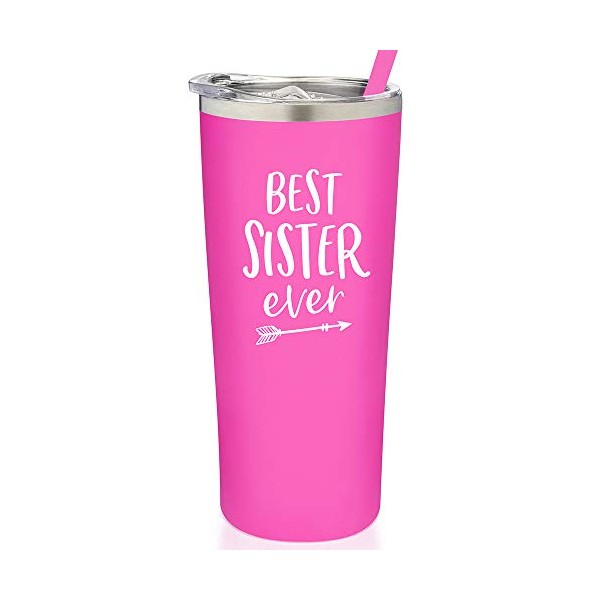 SassyCups Best Sister Ever Tumbler | 22 Ounce Engraved Mint Stainless Steel Vacuum Insulated Travel Mug with Sliding Lid and Straw | Sister Bday Presents | For Sister Birthday | Sister Tumbler Cup