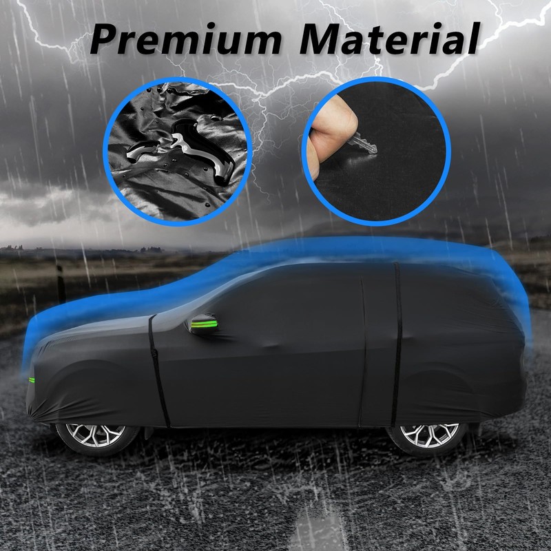 - Premium Quality Material: SaSupfe Car Cover is crafted from flexible 210T Taft Silk fabric, ensuring exceptional durability and resistance against various elements. No-fade properties for long-lasting protection. Suitable for year-round use.