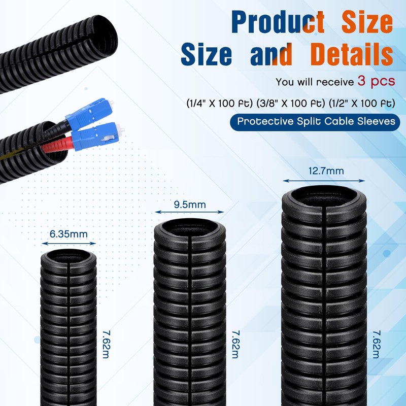 Sasylvia Sasylvia 1/4", 1/2", 3/8" x 25 Ft Split Wire Loom Tubing Wire Loom Assortment Split Cable Sleeves Bulk Flexible Electrical Conduit Protective kit