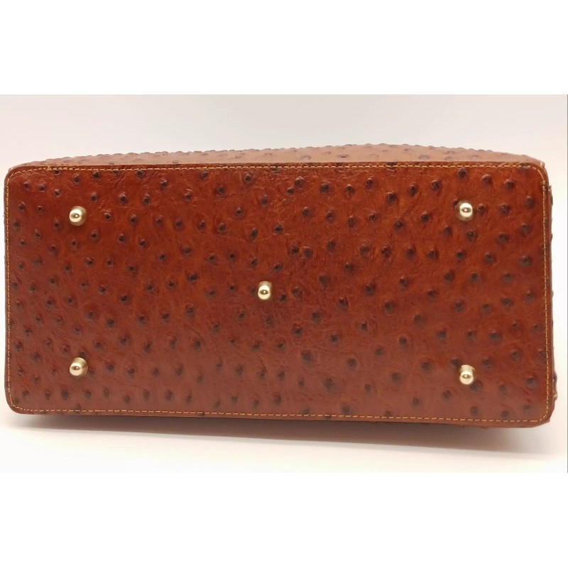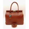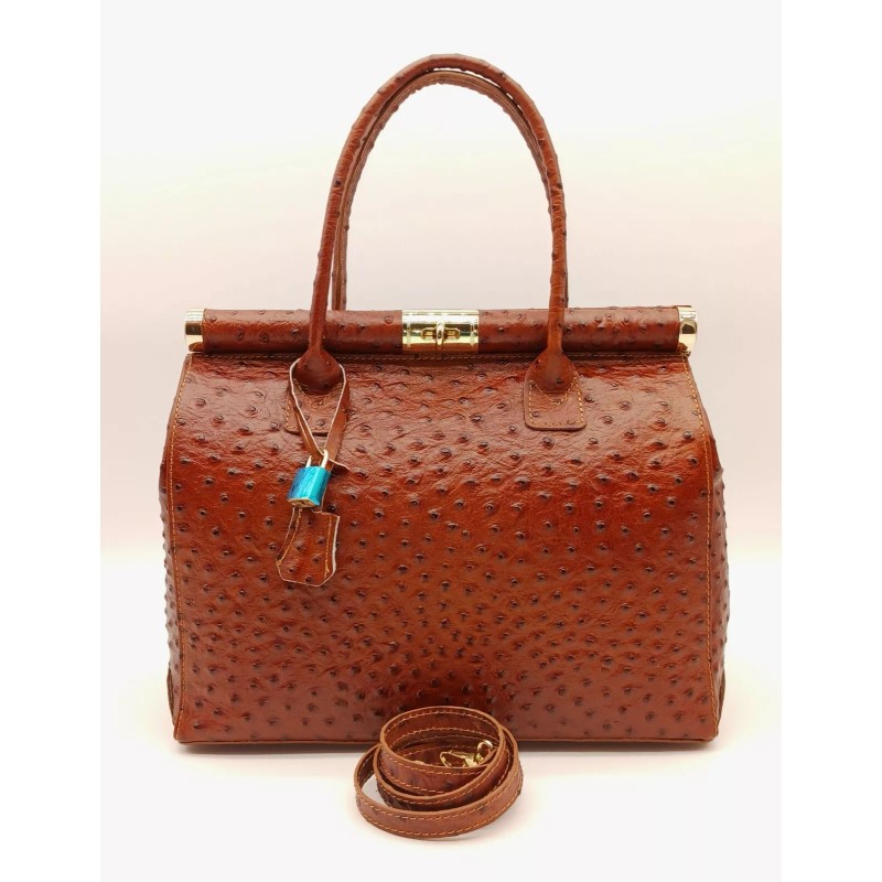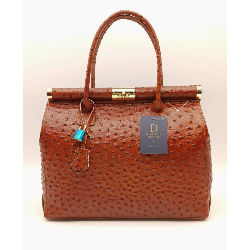 Satchel Italian Lock & Key Genuine Ostrich Embossed Leather Handbag Satchel – Rich Brown