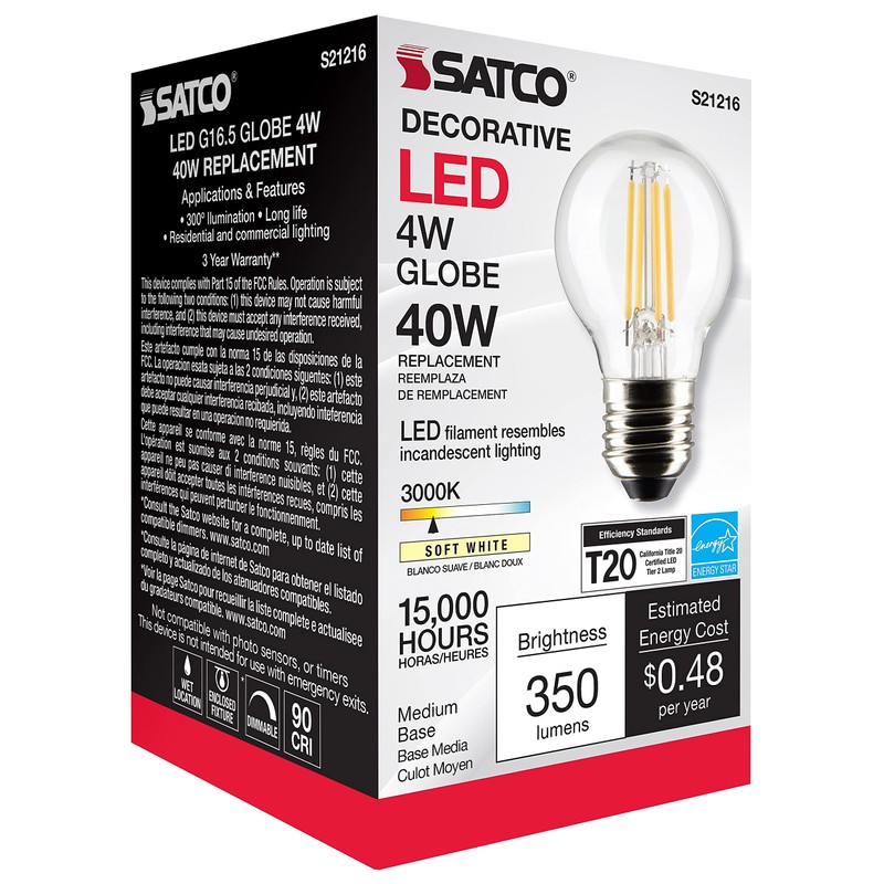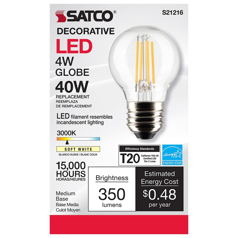• Traditional Meets Contemporary: Satco's S21216 4-watt LED lamp has a vintage style with modern energy saving LED technology, delivering over 15,000 hours of warm white light