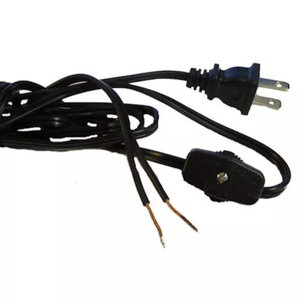 8' BLACK cord with off-on line switch. This is 18 guage 2 wire SPT-1 with molded plug on the end. The line switch is 24"