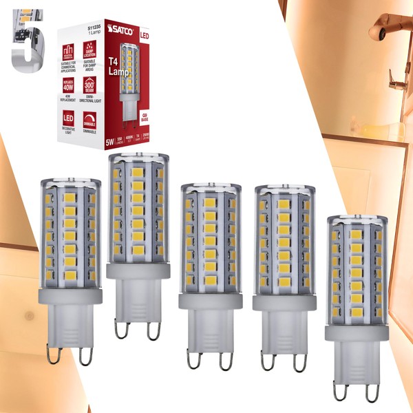 Satco S11235 5W/LED/G9/840/CL/120V/DIM – 5 Watt JCD LED; G9 Base; Clear Finish; 4000K Cool White; 120 Volt; T4 Shape; 40W HID Equivalent; 2.13" MOL; Dimmable;for Accent Lighting (5 Pack)
