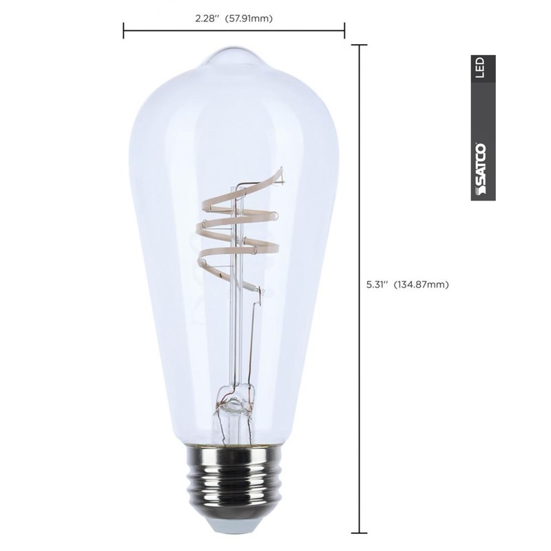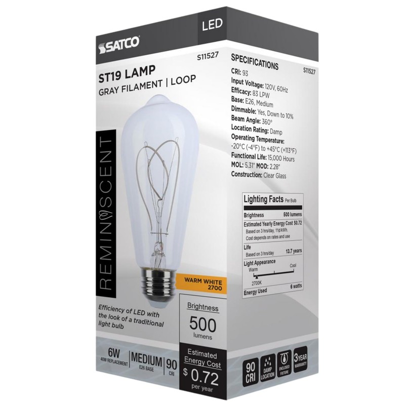 Satco S11527 LED Bulb, 6W (40W Eq), ST19 Vintage Style, Loop Flex Gray Filament, 2700K Warm White, E26 Medium Base, Dimmable, Clear Glass, 500 Lumens, 120V, Enclosed Fixture Rated (24 Pack)