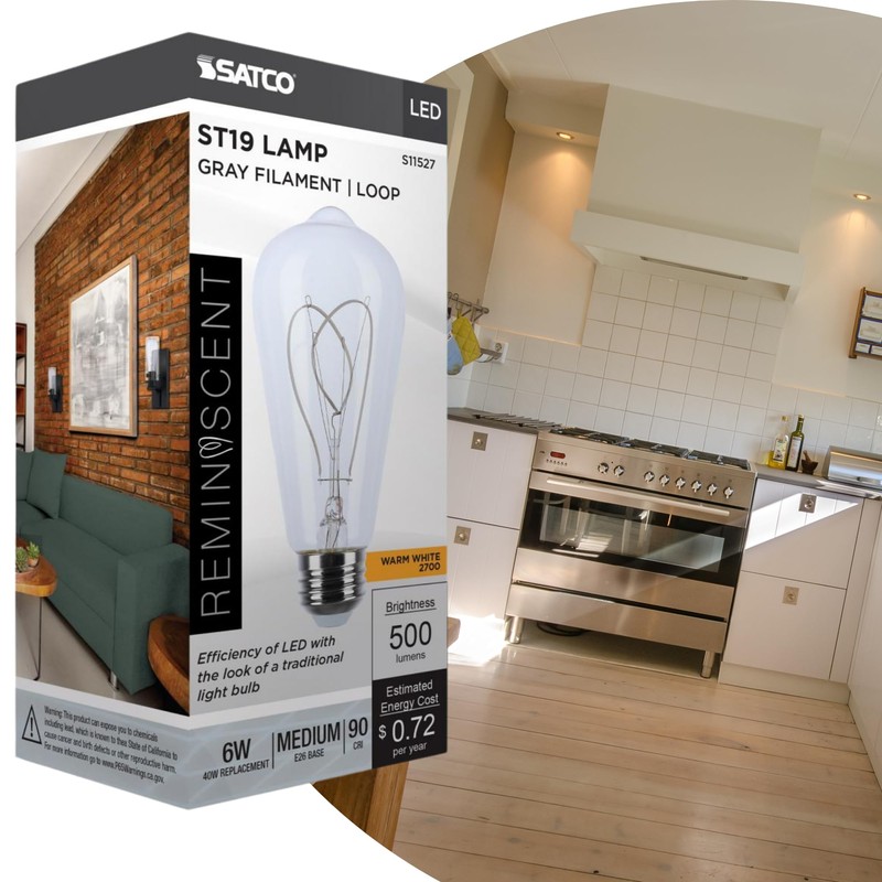 The Satco S11527 ST19 LED Bulb brings the charm of vintage lighting into the modern age with a unique loop-style flex gray filament inside a clear glass housing. Designed to mimic the look of traditional Edison-style bulbs, this decorative LED combines timeless aesthetics with energy-efficient performance. Operating at just 6 watts, it produces a generous 500 lumens, equivalent to a 40-watt incandescent. It delivers soft warm white 2700K light in a full 360° beam spread, making it ideal for open fixtures like pendant lights, vintage wall sconces, or decorative chandeliers. Its high CRI of 93+ ensures excellent color fidelity, bringing out the natural vibrancy of objects and skin tones. The bulb is fully dimmable on 120V circuits, offering total control of ambiance from soft accent light to full brightness. Built to perform, this lamp is rated for enclosed fixtures and wet locations, making it equally suitable for interior settings and protected outdoor environments. It’s rated for 15,000 hours of use and features instant-on technology with no delay or flickering. Whether you're outfitting a restaurant, updating your home’s décor, or designing a boutique interior, the Satco S11527 combines form, function, and reliability with a nostalgic flair—backed by a 3-year limited warranty for added peace of mind.