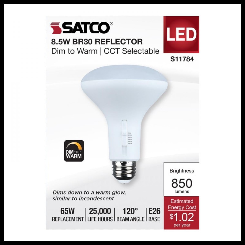 Satco S11784 8.5 Watt BR30 LED; 27K/30K/35K/40K/50K CCT Selectable; Dim to Warm; White Finish; 120 Volt; 8.5BR30/LED/5CCT/WD/120V