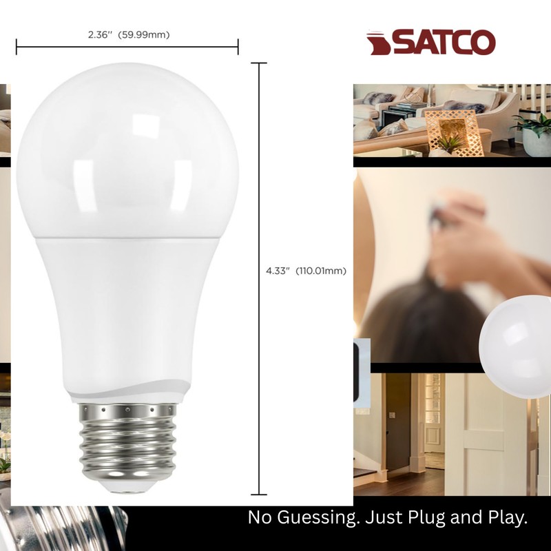 Satco S9594 9.5W A19 LED Bulb, 3000K Soft White, E26 Medium Base, 800 Lumens, Frosted Finish, 220° Beam Angle, Non-Dimmable, Enclosed Fixture Rated, 120V, Energy Efficient A-Type Lamp (6 Pack)
