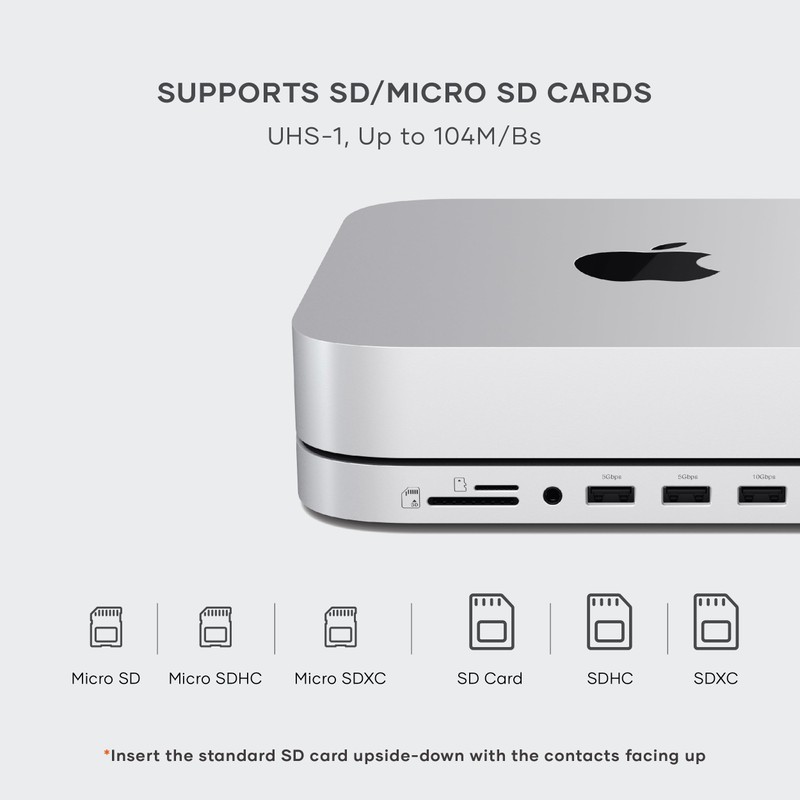 Satechi USB-C Stand Hub NVMe/SATA SSD Slot (M1 M2 Mac Mini) USB-C Data Port (10Gbps), Micro/SD Card Slot, USB-A (10/5Gbps), Headphone Jack Port