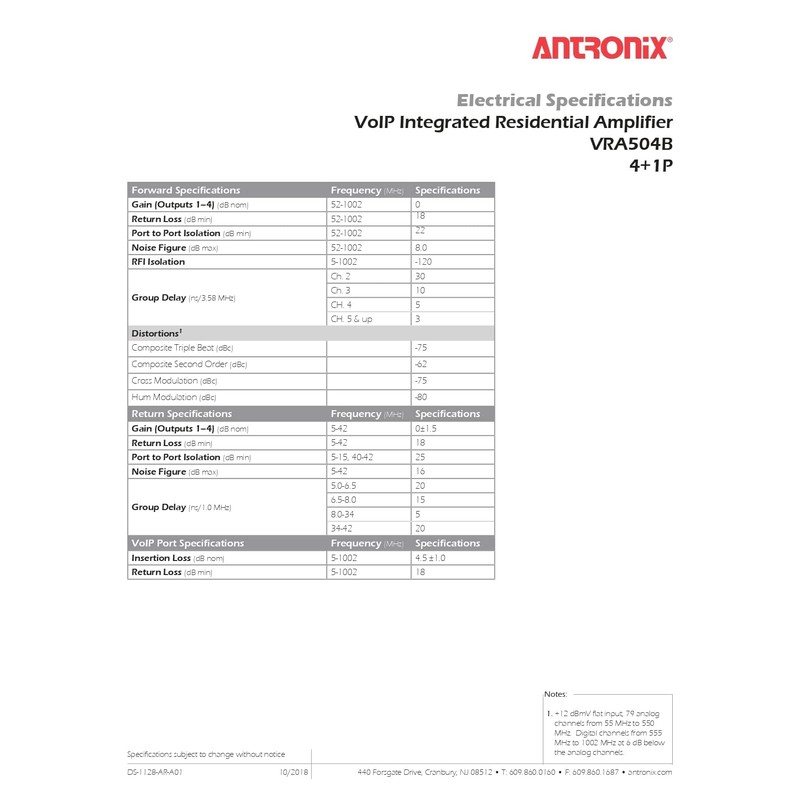 SatelliteSale Antronix VRA504B/ACP 75Ohm VoIP Integrated Residential Amplifier 4+1P Kit