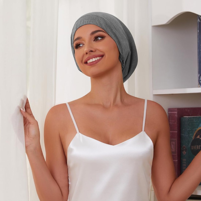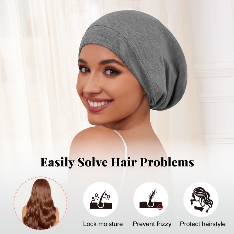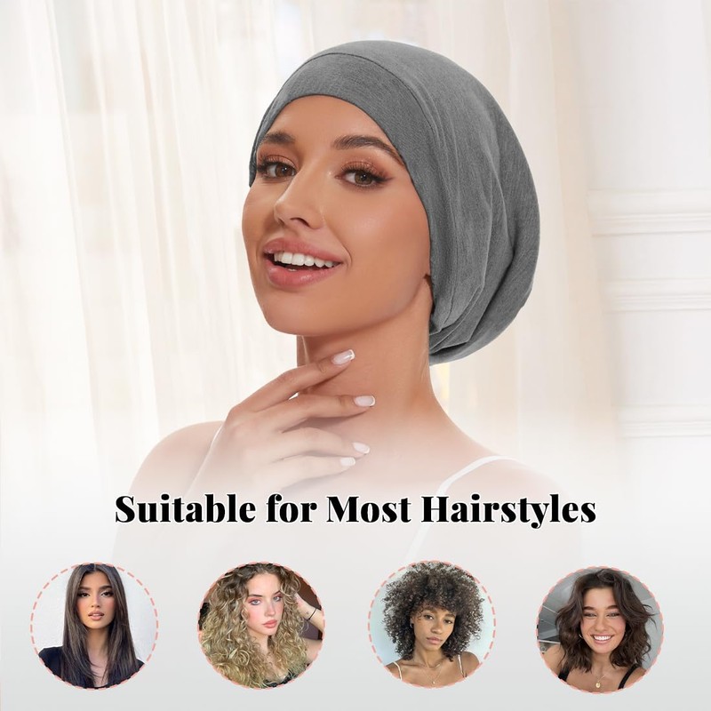 - Adjustable & Secure Fit: Crafted for all-day comfort, this bonnet for sleeping features a stretchy outer cotton layer and soft interior. The adjustable buckle ensures the sleep bonnet stays snug without slipping, even for restless sleepers