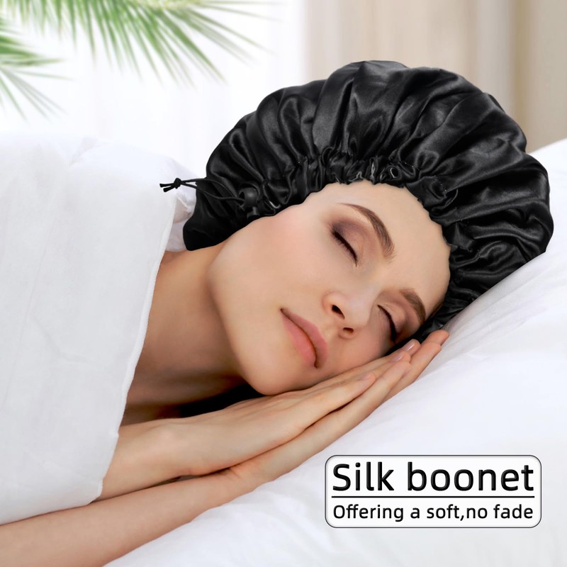 - 【Premium Material】This hair bonnet is made from an extremely comfortable and soft satin fabric, which is carefully selected to provide a gentle touch to the skin and hair, ensuring comfort during wear. The sleep bonnetp is soft, moisture-absorbing, and sweat-wicking, gentle enough for sensitive skin.