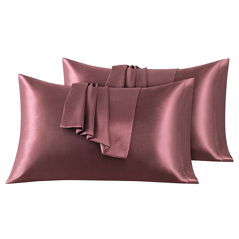 Satin Cushion Cover, 45 x 70 cm, Pack of 2, 100% Satin, Super Soft Pillowcase, Dark Pink