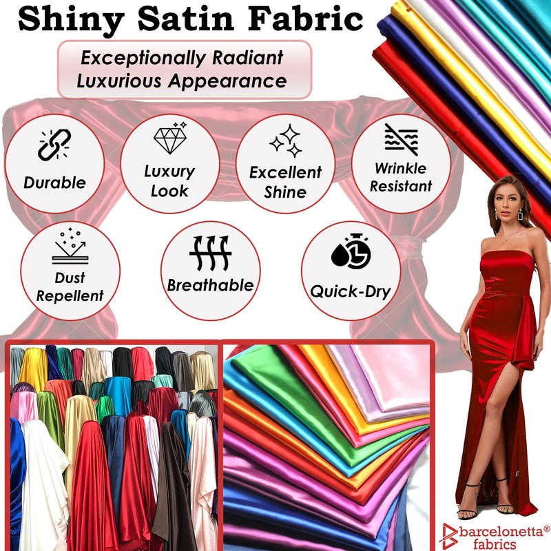 - LUXURIOUS SHINY SATIN FABRIC - Elevate your projects with premium satin fabric, featuring a glossy, smooth finish. This shiny satin fabric is perfect for crafting, sewing, and designing elegant garments or décor. Whether you're creating formal wear, bridal gowns, or decorative accents, this satin fabric adds a touch of luxury and sophistication to every creation.