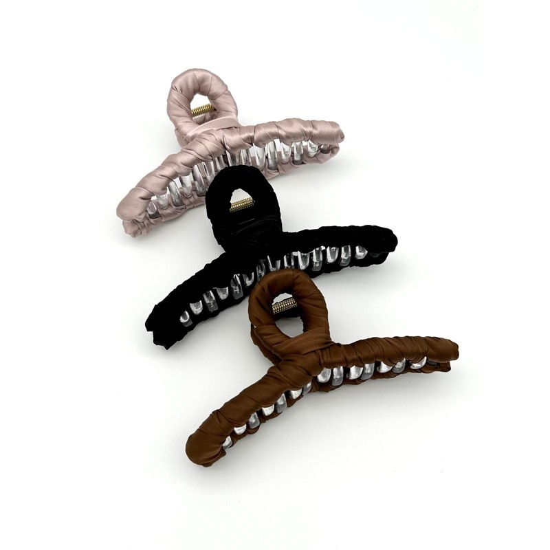 • Design: elegant satin hair clip, 12.5 cm long, available in three timeless colours - black, brown and rose