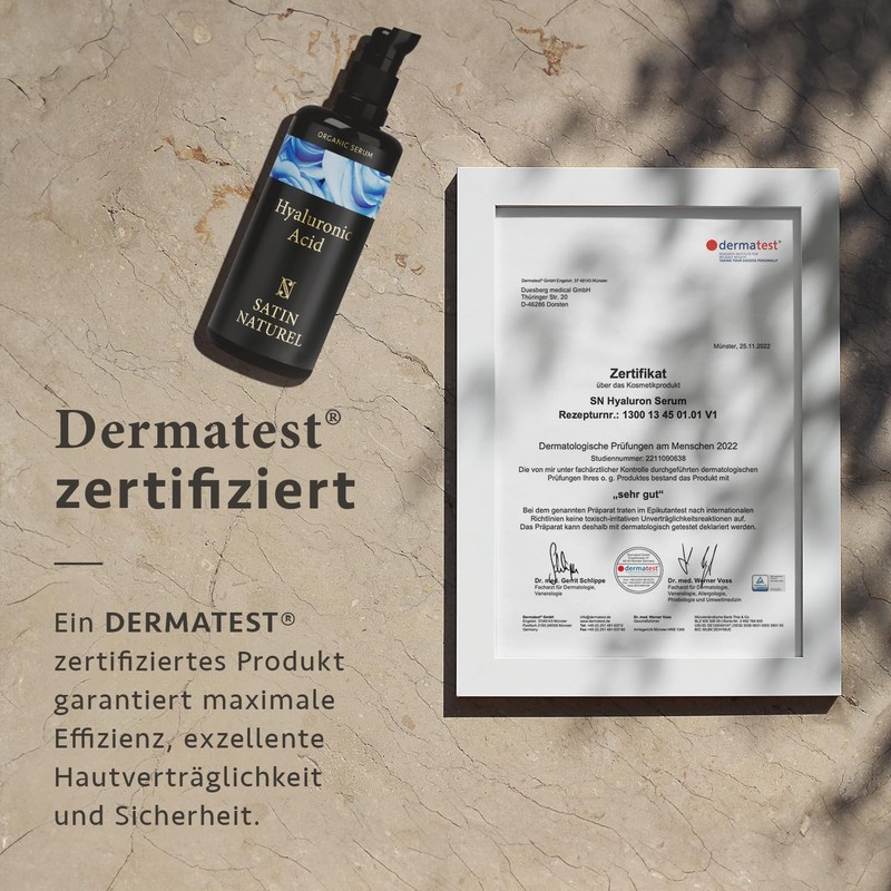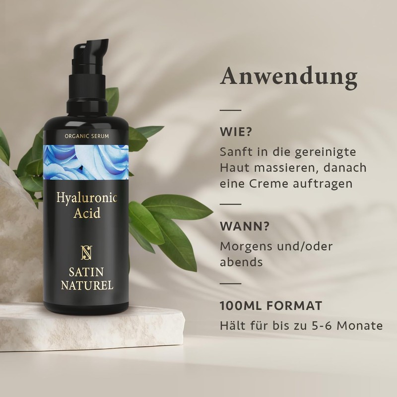 Satin Naturel Hyaluronic Acid Serum 100ml – High-Dose Hydration for 24H, Anti-Aging Facial Care with Organic Aloe Vera – Vegan, for Men and Women