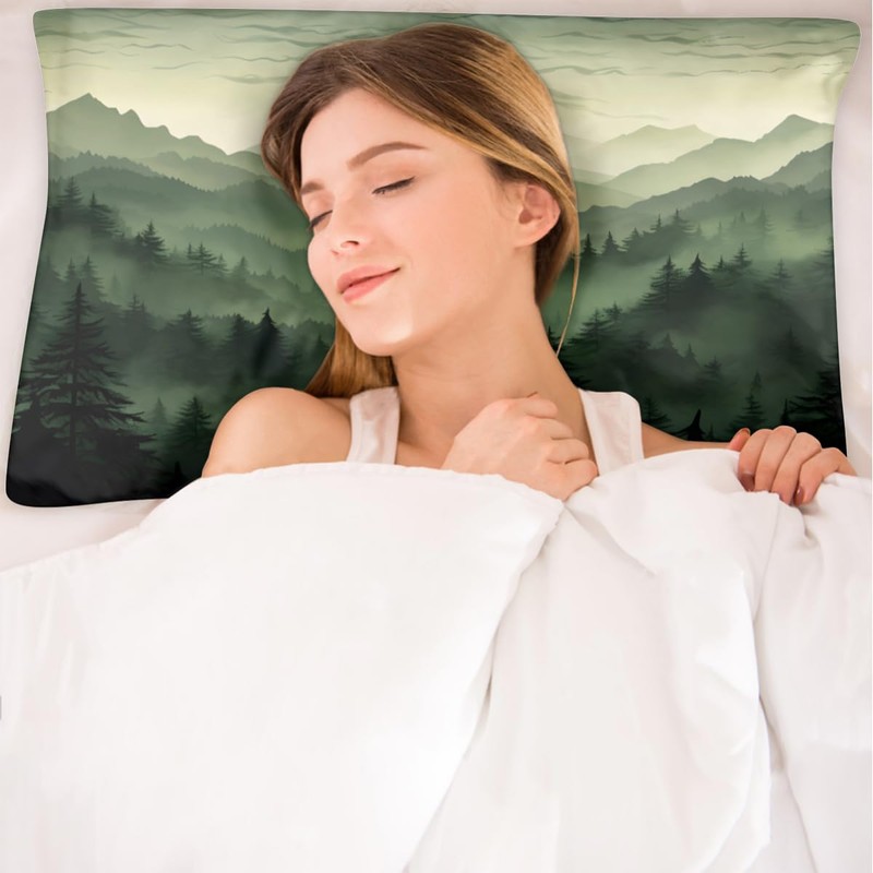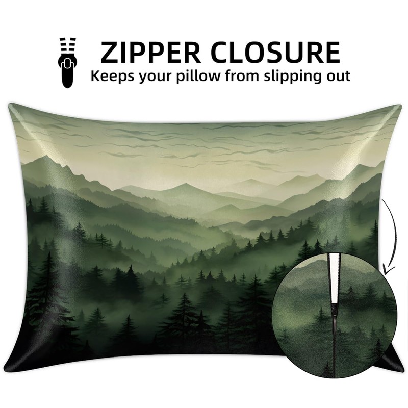 Satin Pillowcase for Hair and Skin, Mountain Top Silk Pillowcase Queen Size Silky Pillowcases with Zipper Cooling Satin Pillow Cases Pillow Cover (20x30 Inches)