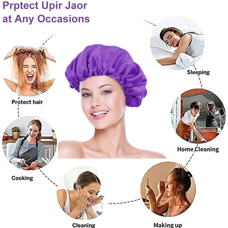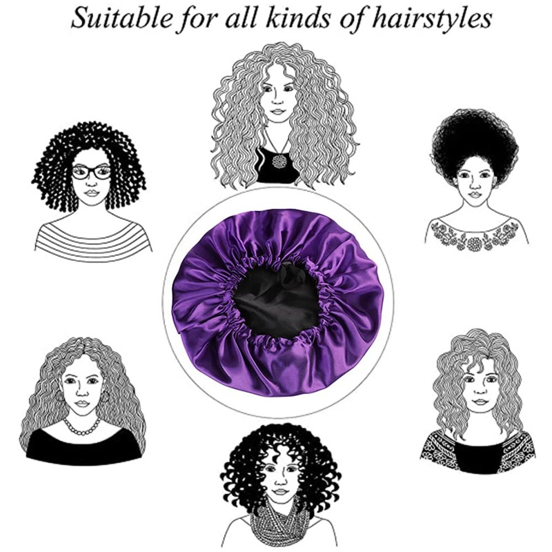 - Doppelschichtige Satinkappe: Die doppelseitige Schlafmütze besteht aus Satin, mit glatter, leichter Oberfläche und weicher Haut, die das Gewicht des Kopfes nicht erhöht und lange bequem ist. Atmungsaktiv beim Tragen, um die Feuchtigkeit und Glanz des Haares zu maximieren.
