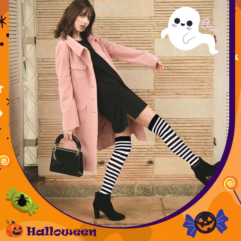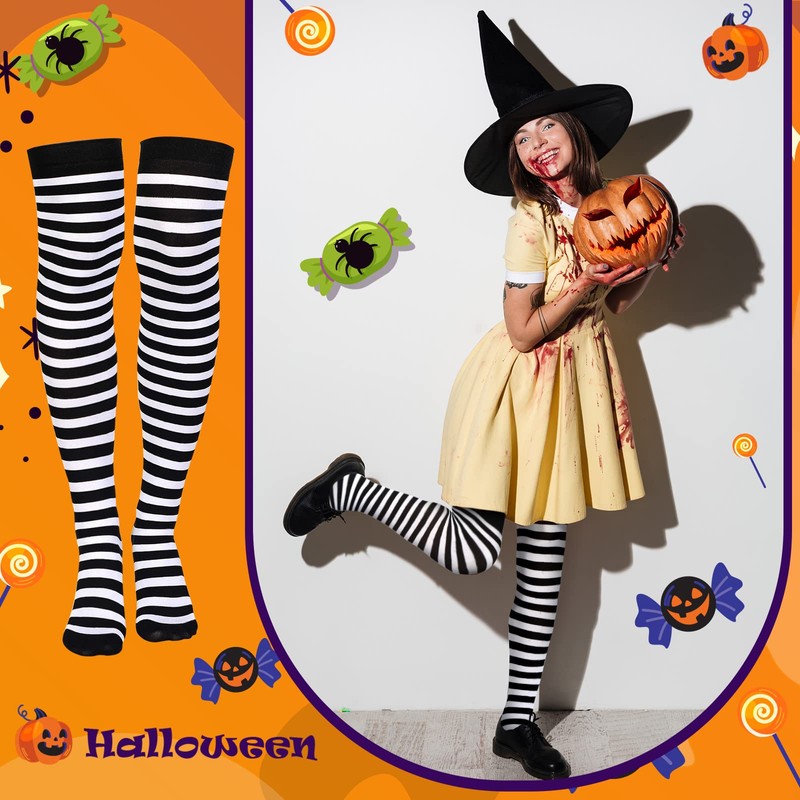 These striped thigh tights are suitable for festival, Thanksgiving, carnival and party dress.