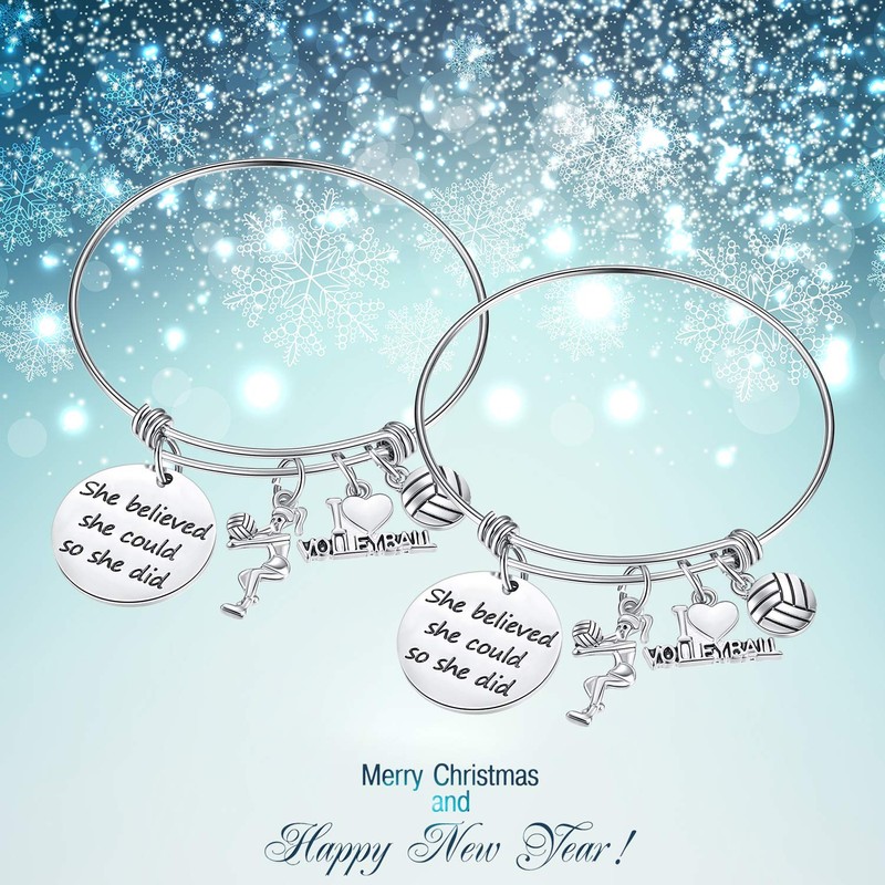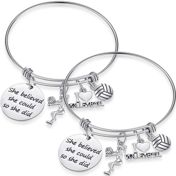 SATINIOR 2 Pieces Volleyball Softball Charm Bangle Bracelet Jewelry Gift for Ball Players (Volleyball)