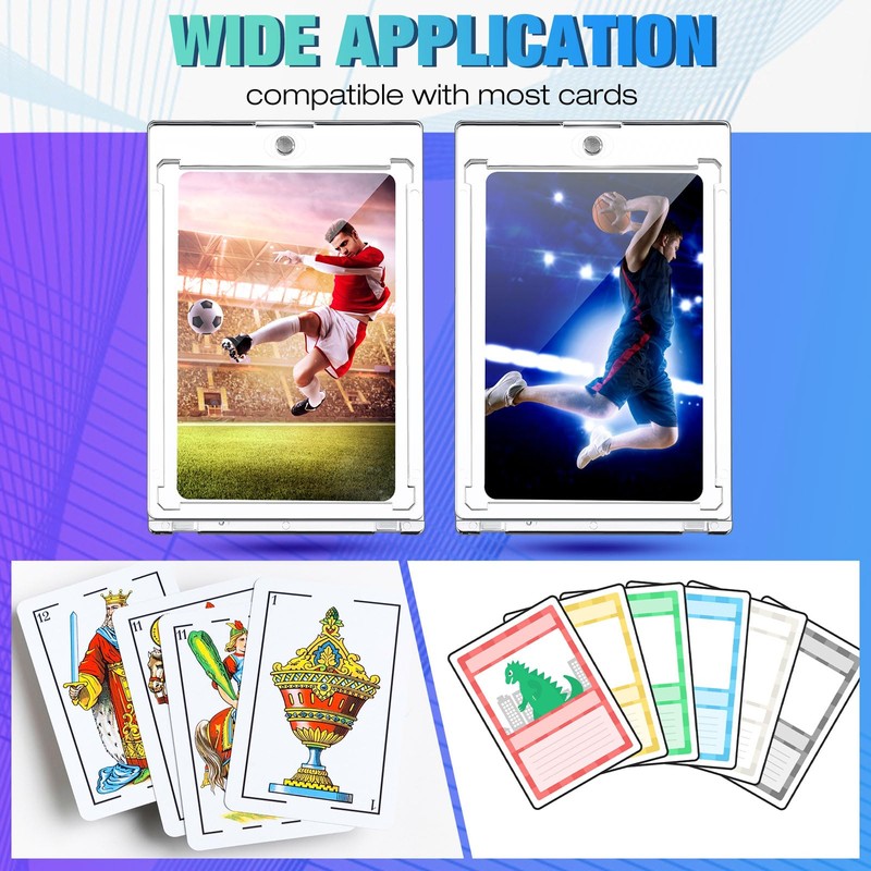 - Unique Gifting Option: for those passionate about cards, these magnetic sports card holders are a thoughtful gifting option; Be it basketball, sports, game, shopping, or baseball cards, our card holders provide a sturdy protective case to display them safely