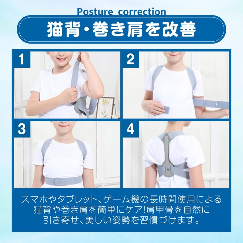 - Care for your back, rolled shoulders, and smartphone neck. Posture support for children. Just attach it to school or at home when studying, reading or playing games. It helps you develop good posture and healthy growth. Choose from junior sizes S/M/L