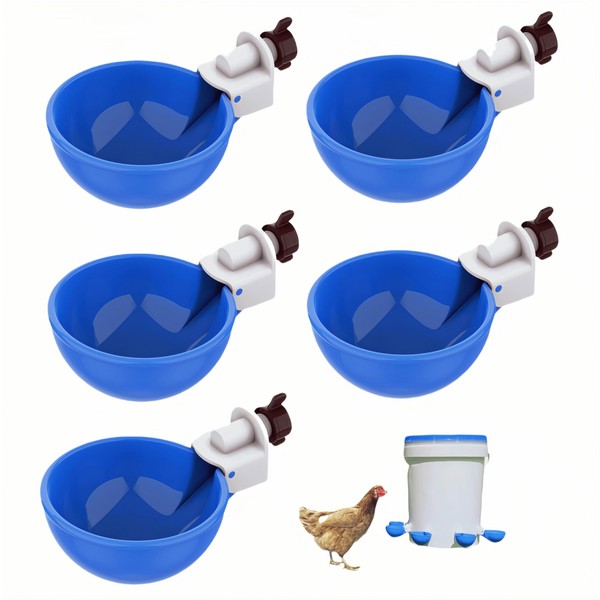SATONBEYI Chicken Waterer Cups 5 Packs,Duck Chick Waterer Chicken Feeder Cups,Automatic Waterer Feeder with Anti-Leak System for Chicken,Duck,Goose,Bunny(Blue)