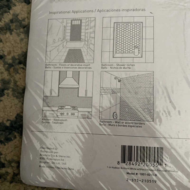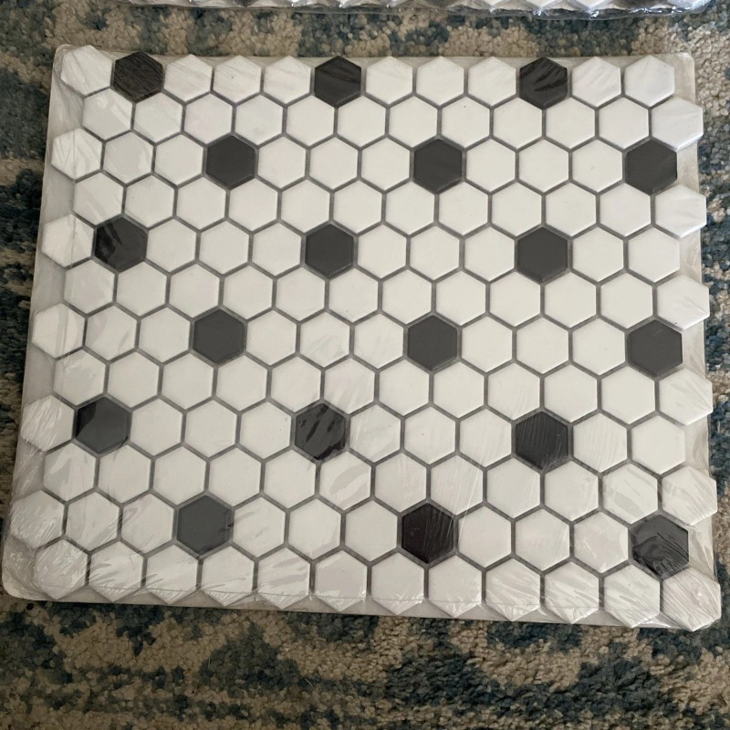 Satori By Anatolla White Black Floor Tile Porcelain Mosaic Hexagon 1 Sheet 10.16
