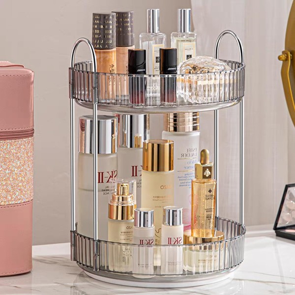 Satpurush Rotating Makeup Organizer - Premium Vanity Organizer for Skincare, Cosmetics, and Accessories, Space-Saving Design with 360-Degree Rotation (Clear Grey, 2 Tier)