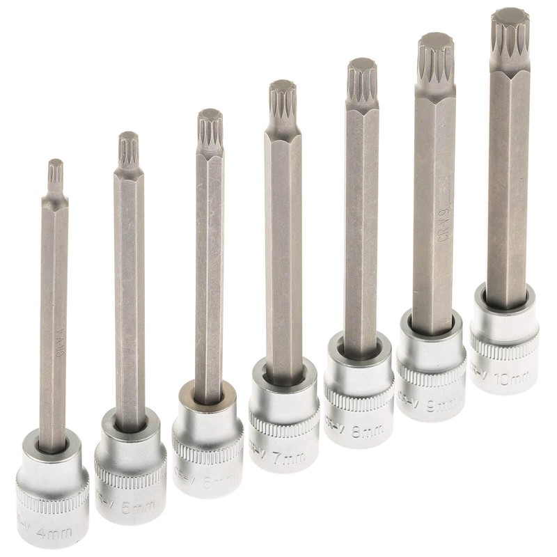 SATRA S-SPB738 Bit Set Multi-Tooth Insert Internal Spline for XZN 7 Pieces in Case Drive 10 mm (3/8 Inch) Internal Square