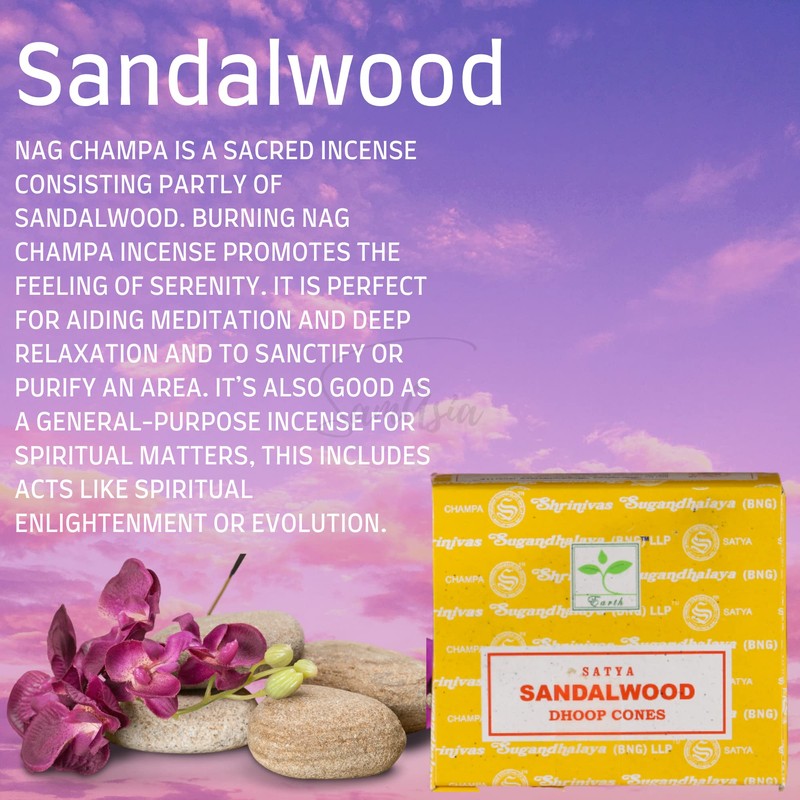 - Satya Incense Cones are a fantastic way to enjoy this famous fragrance.