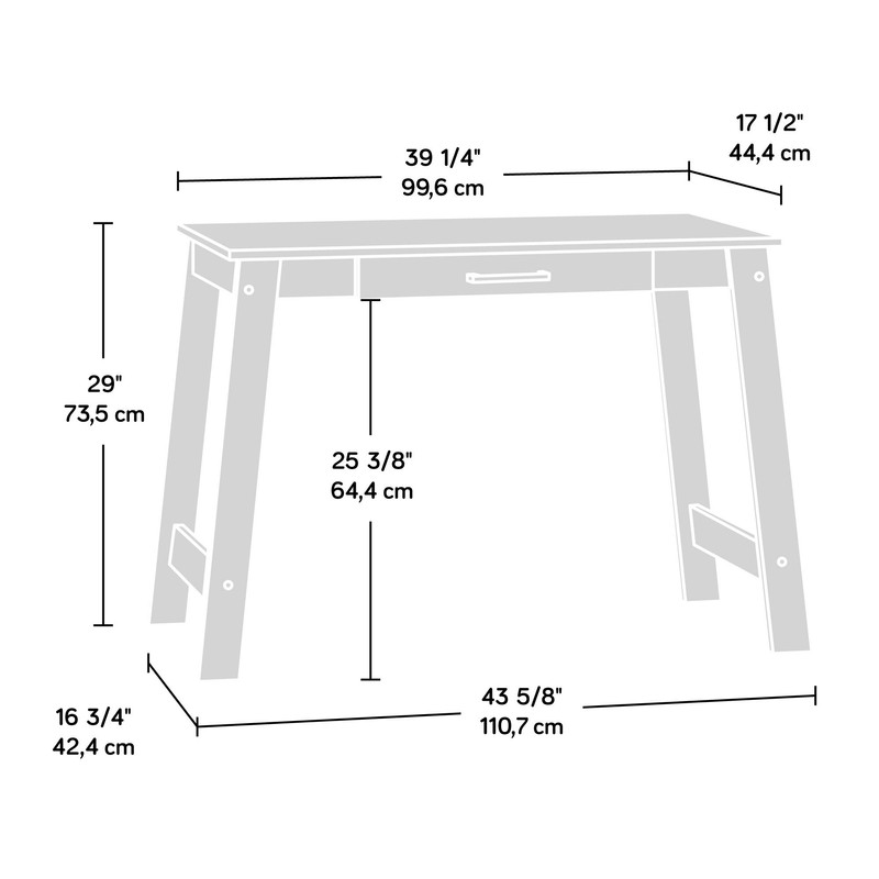 Sauder Beginnings Writing Table, L: 43.58" x W: 17.48" x H: 28.94", Silver Sycamore Finish