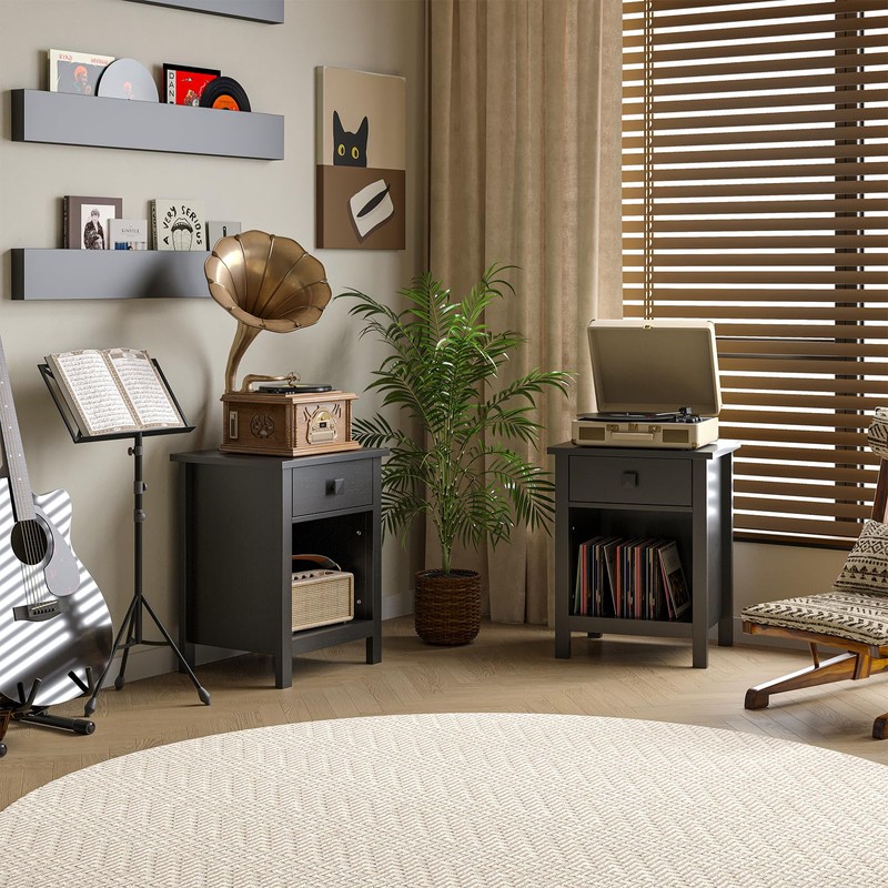 - ②【Drawer+Open Shelf Design】This night stand combination provides convenient and secure storage, making it easy to organize and access items while ensuring the safety of small objects from children and pets.