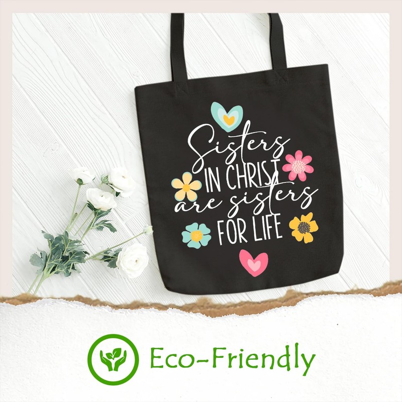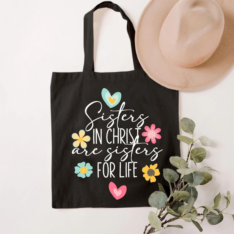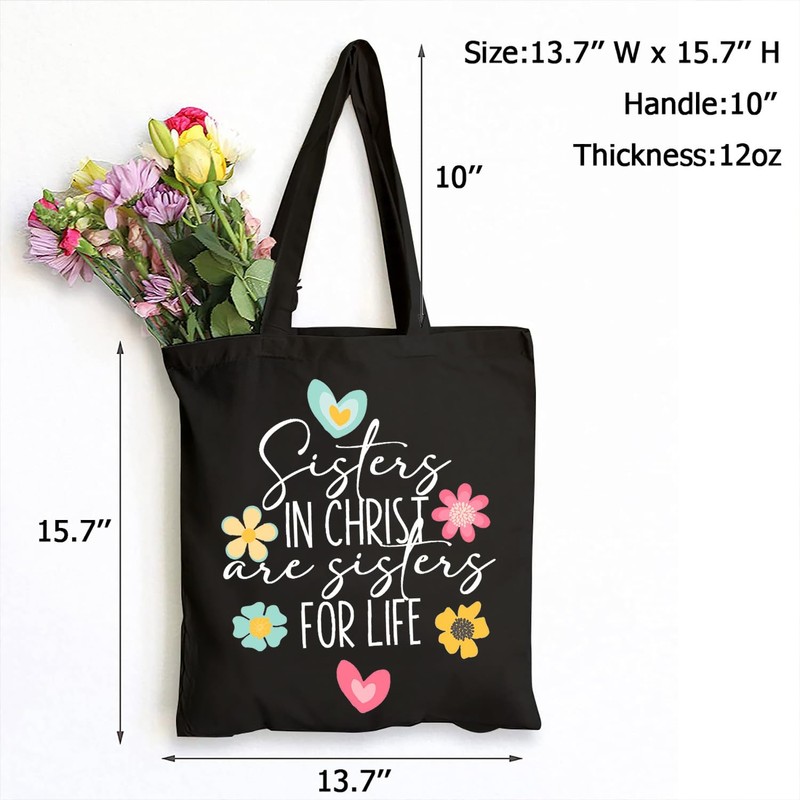SAUIVD Sister in Christ are Sister for Lifes Tote Bag for Women Religious Flower Christian Tote Bag Reusable Grocery Bag