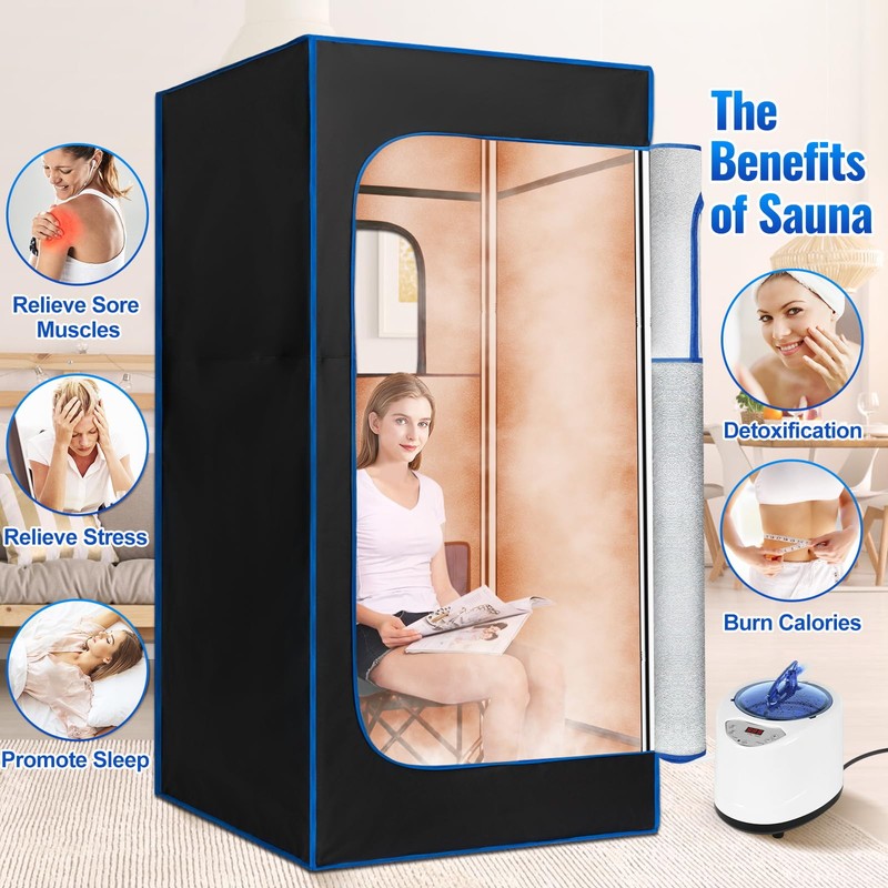 X-Vcak Portable Sauna Box, Steam Sauna Tent for Home with Steamer, Remote Control, Folding Chair, 9 Levels, 2.6’ x 2.6’ x 5.9’
