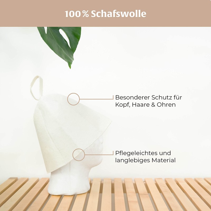 - Ideal sauna accessory: keep the loads low when sauna and do not miss out on the felt hat to protect your circulation.