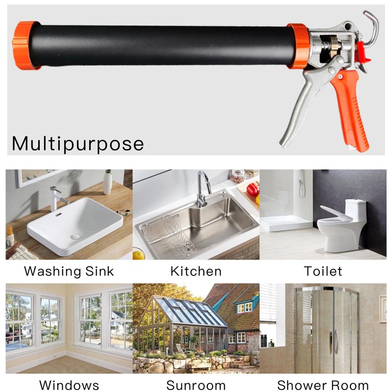 - 【Compatiblity】Designed to be used in both 20 oz(600ml) Sausage Foil Packs and industry standard 10.3 oz. Cartridges.18:1 thrust ratio, the Sausage Caulking Gun can be used to apply medium-high viscosity caulks and adhesives