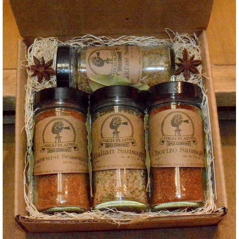 Sausage Seasoning Sampler Gift Set of 4 ~ Gift Set by High Plains Spice Company ~ Gourmet Meat Spice Blends & Rubs For Beef, Chicken, Veggies & All Recipes ~ Spice Blends Handcrafted In Colorado, USA