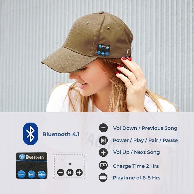 - Bluetooth Control Convenience: Seamlessly adjust volume, change songs, and connect with the built-in Bluetooth controls on our wireless stereo Bluetooth 4.1 smart snapback cap.